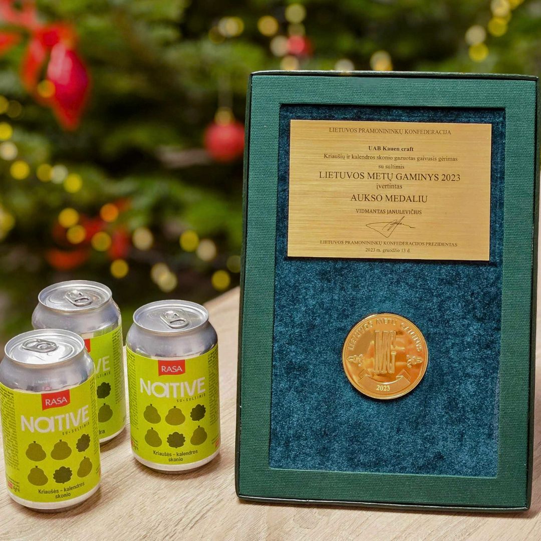 We are delighted to announce that our pear and coriander flavored drink, RASA Native, has been awarded the prestigious gold medal at the 2023 Lithuanian Product of the Year Awards! This recognition is a testament to our unwavering commitment to producing high-quality, innovative beverages that our customers love.